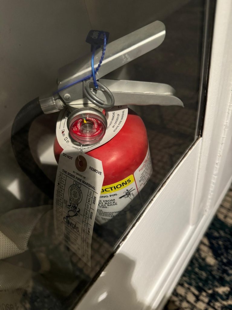 EXTINCTOR en Californie, quand les étiquettes de vérifications périodiques obligatoires d’extincteurs sont apposées avec scellés et non collées !