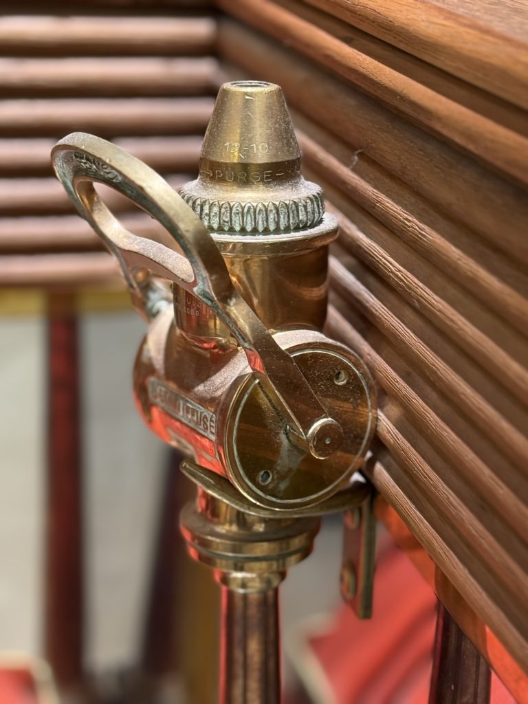 Les robinets d’incendie visibles dans certaines boutiques historiques de Paris, comme aux Galeries Lafayette, témoignent d’un savoir-faire ancien. Réalisés en laiton massif et cuivre poli, ils allient esthétique et efficacité.